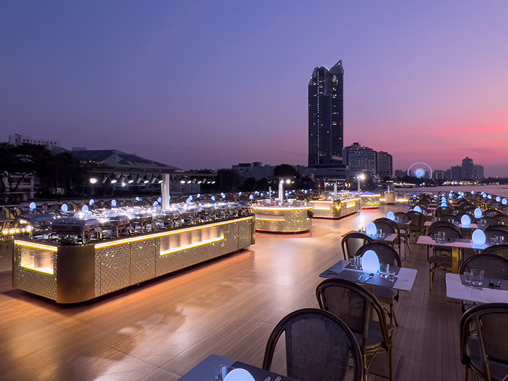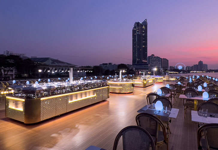 チャオプラヤー川を遊覧する船上から、夜空に煌めく花火を見ることができるディナークルーズです。