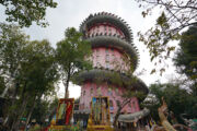 ピンク色の高い塔に巨大な龍が巻きつく、かなりインパクトのある姿から「ドラゴンテンプル」と呼ばれることもあります。