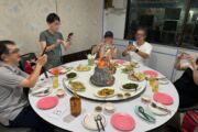 炭火で火を通したエビを特注の鍋に並べ、アルコールを注いで着火すると、火山の噴火のような炎が立ち上ります。GWに催行するのは、見て楽しく、食べて記憶に残る半日ツアーです!