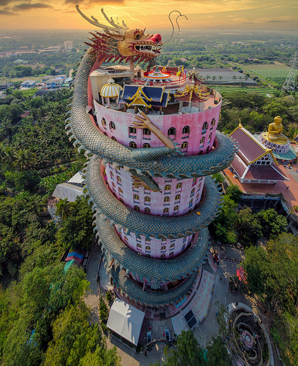 龍が巻きつく不思議な寺院『ワットサムプラン』